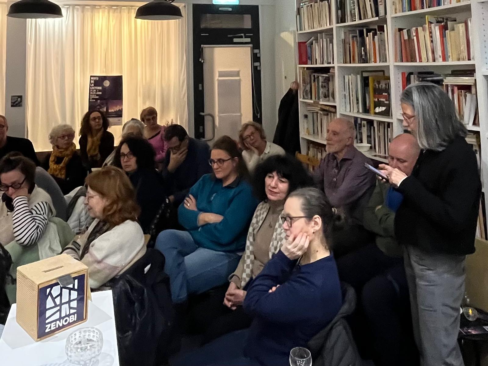 La soirée s’est ensuite transformée en un moment de partage vivant et spontané. Chaque participant·e, à tour de rôle, a pris la parole pour lire, réciter ou chanter dans sa langue d’origine ou celle de ses parents ou grands-parents. Chaque prise de parole était suivie d’une traduction en français, rendant l’ensemble accessible à toutes et tous. Les langues représentées ont illustré la diversité linguistique présente dans nos communautés, avec des interventions en arabe (variantes tunisienne, algérienne, libanaise), basque, espagnol (d’Espagne et du Mexique), occitan (l’une de ses variantes), ukrainien, russe et serbo-croate.